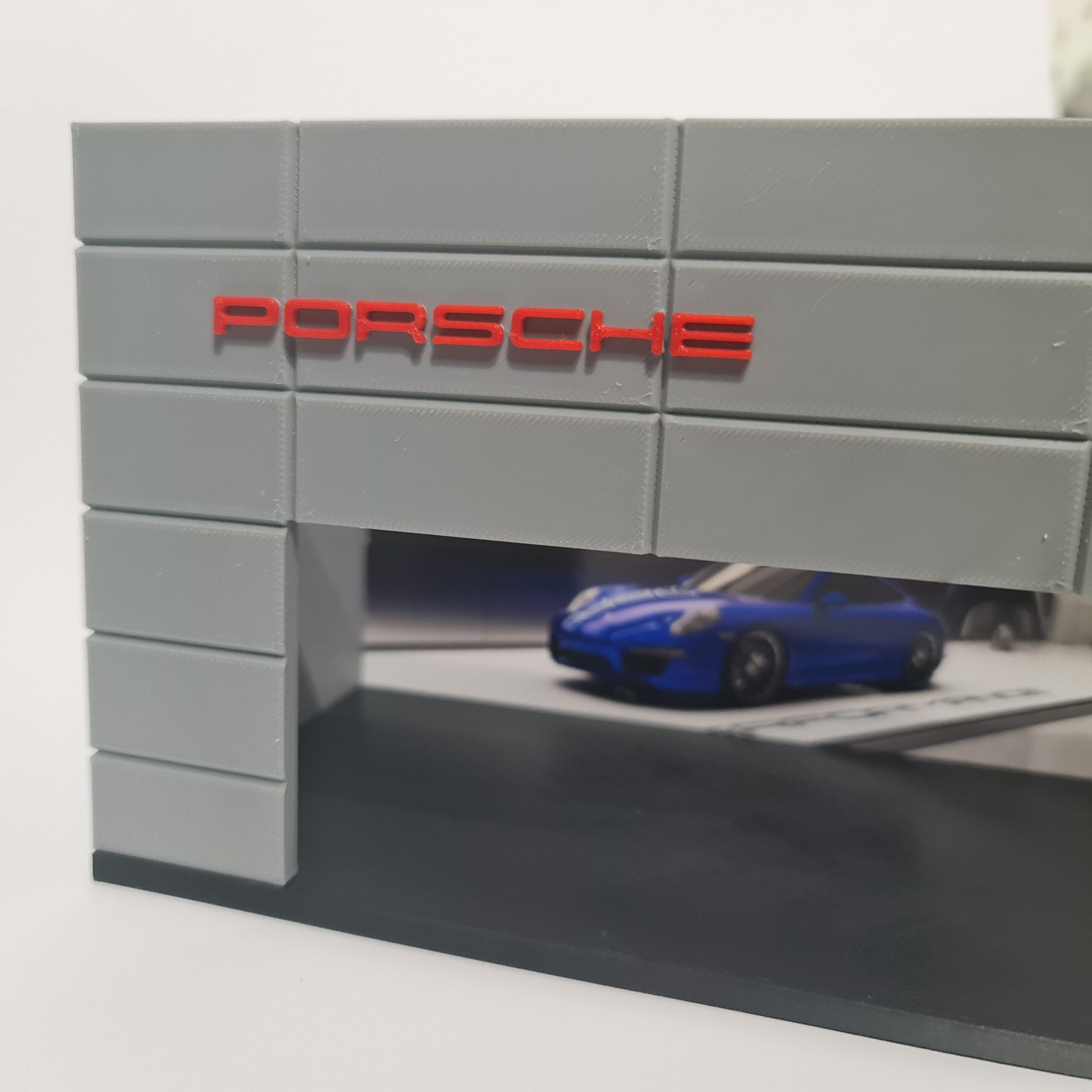 Each one designed and created in house by CCDesign. 3D Printed structure with realistic details topped off with a full colour printed background to create an Porsche Dealership effect.